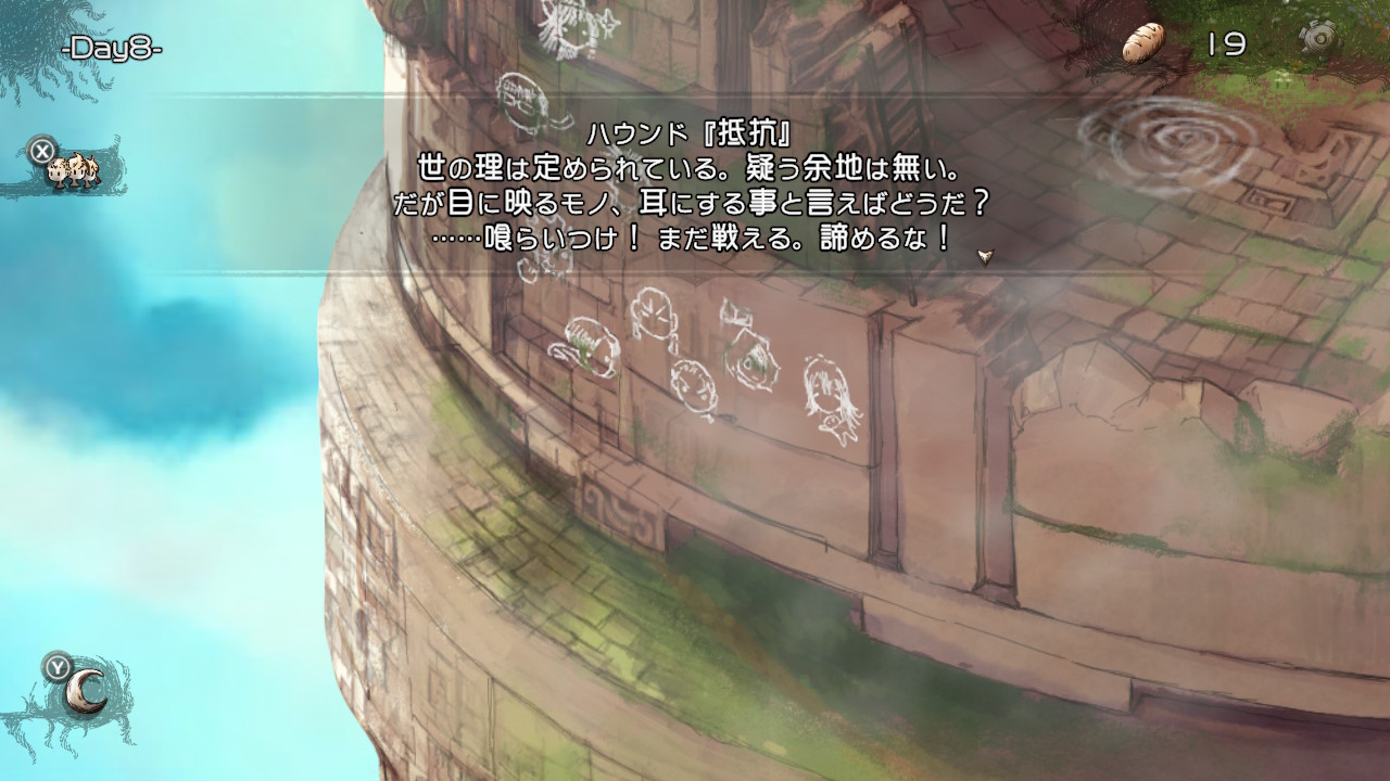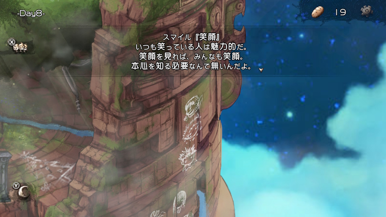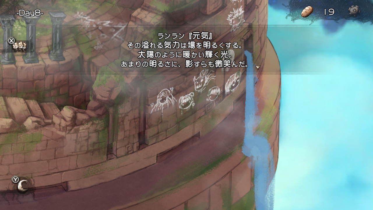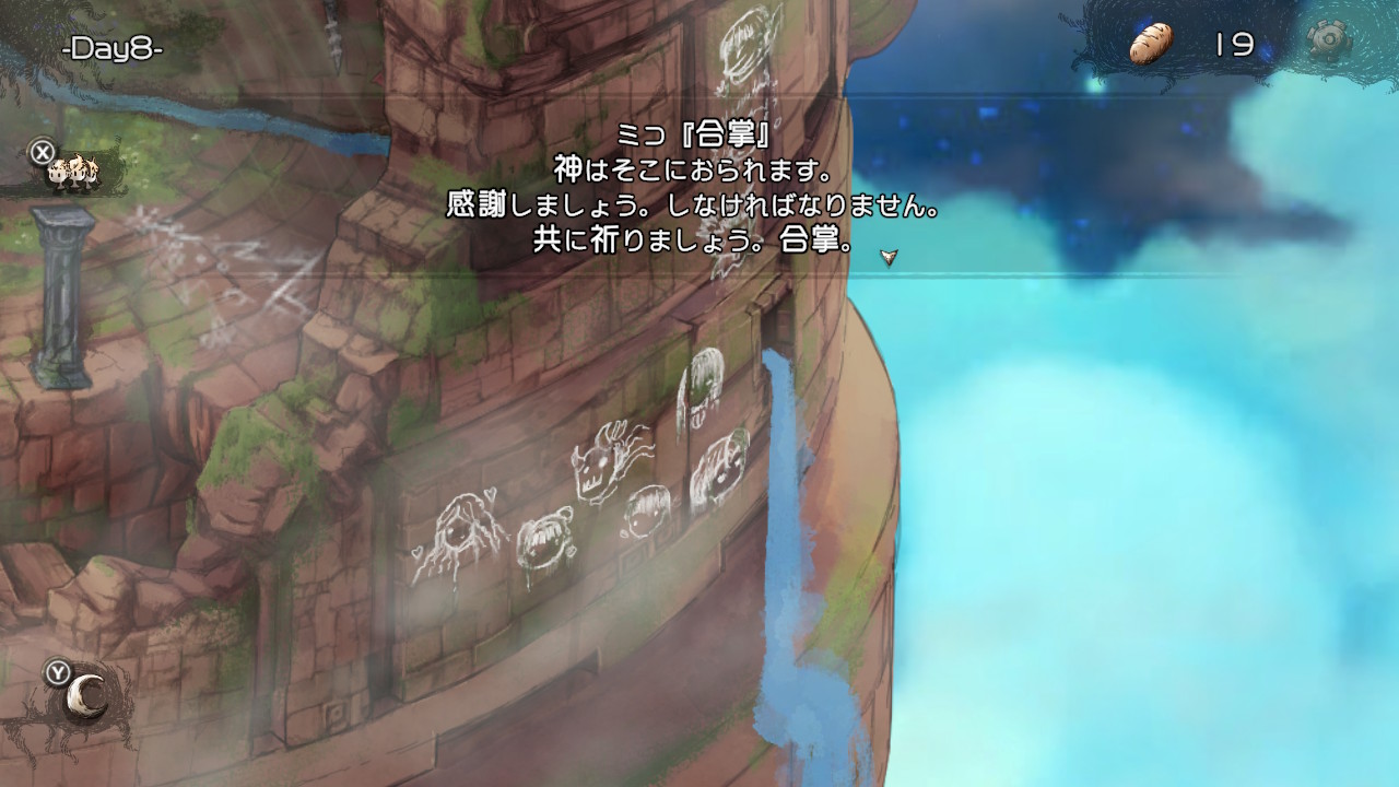 HELLモードで子らを地上に導くと、導いた子の顔の落書きが外壁に増える。