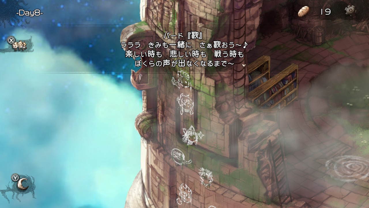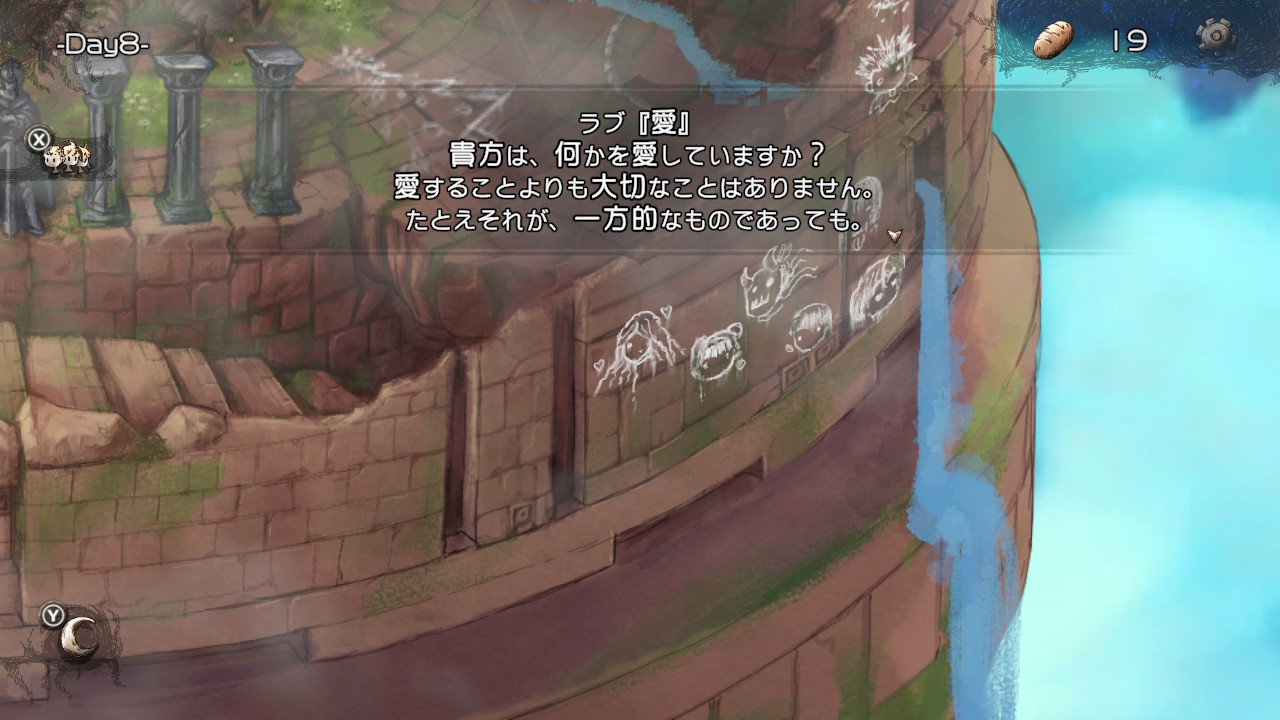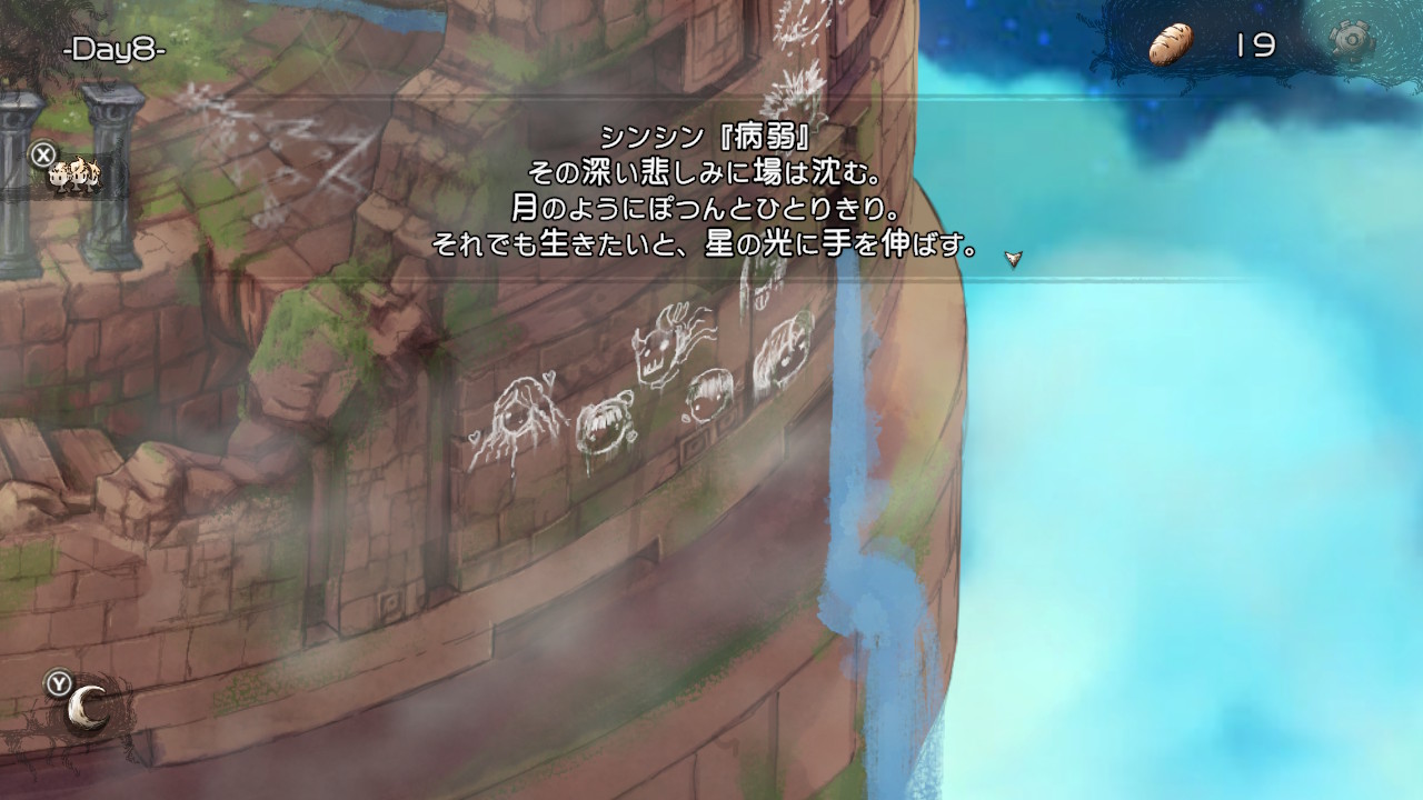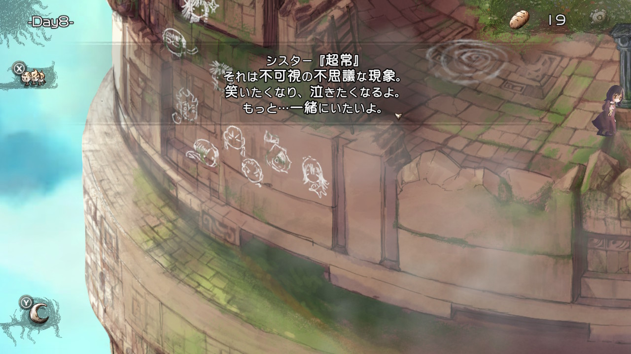 HELLモードで子らを地上に導くと、導いた子の顔の落書きが外壁に増える。