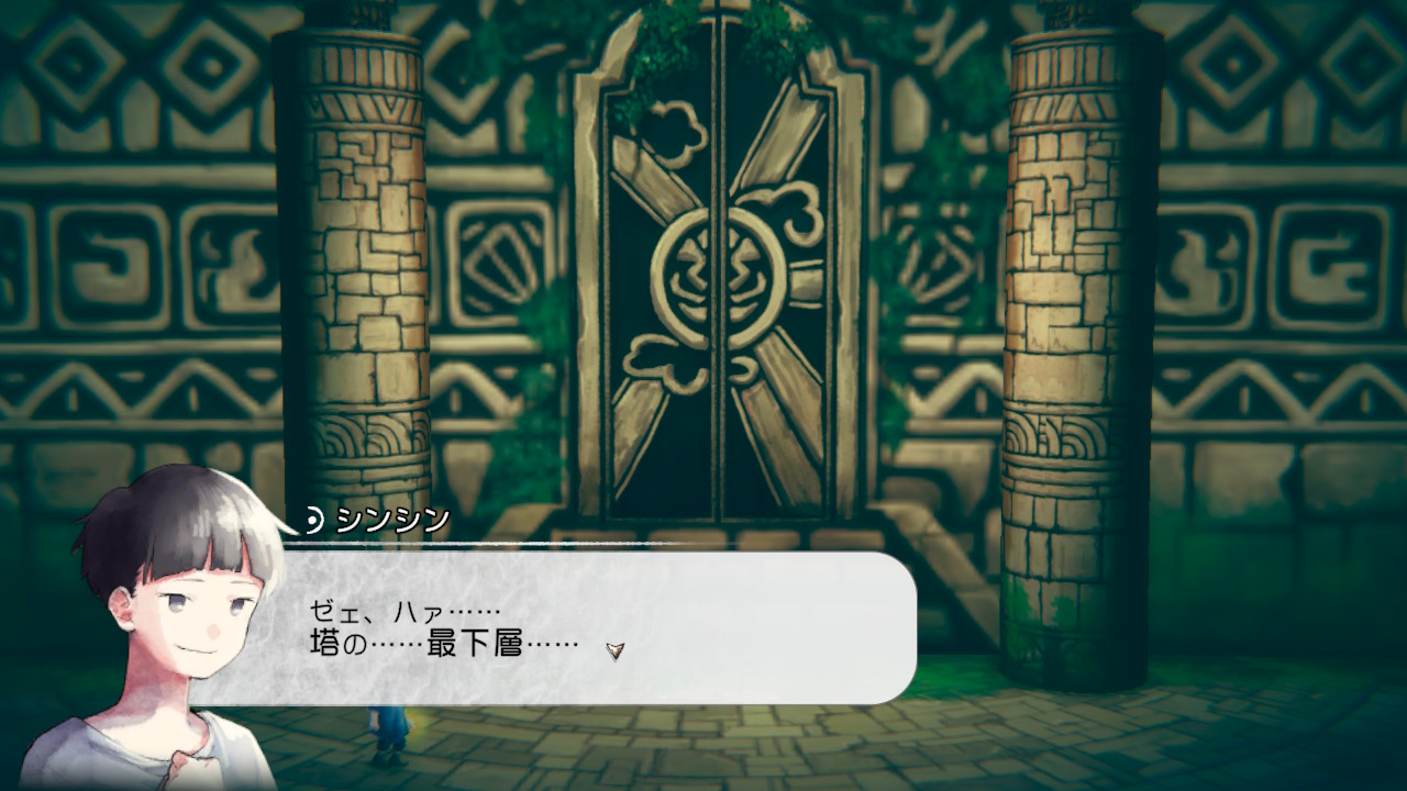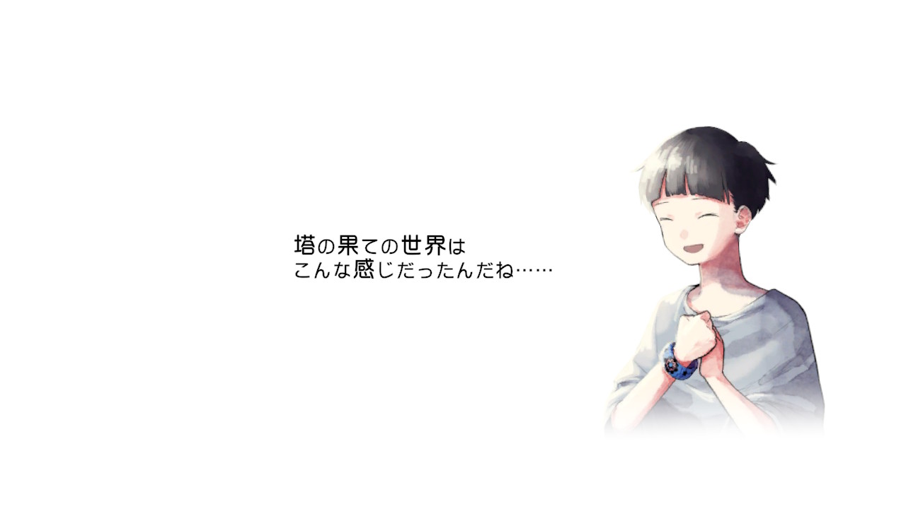 タイトルのロゴ「ハテナの塔 The Tower of Children」は言語設定を変えるとタイトルも変化する。