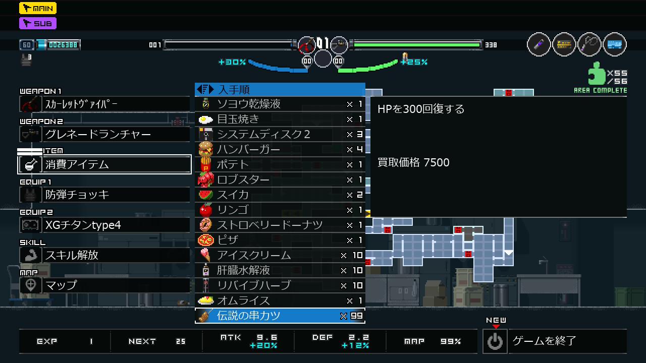 - アイテムは100個以上になると表記が上の2ケタだけになる?