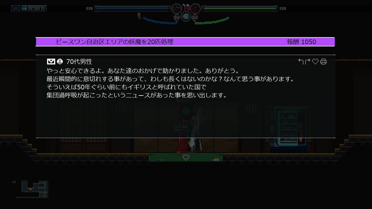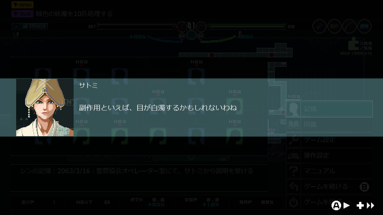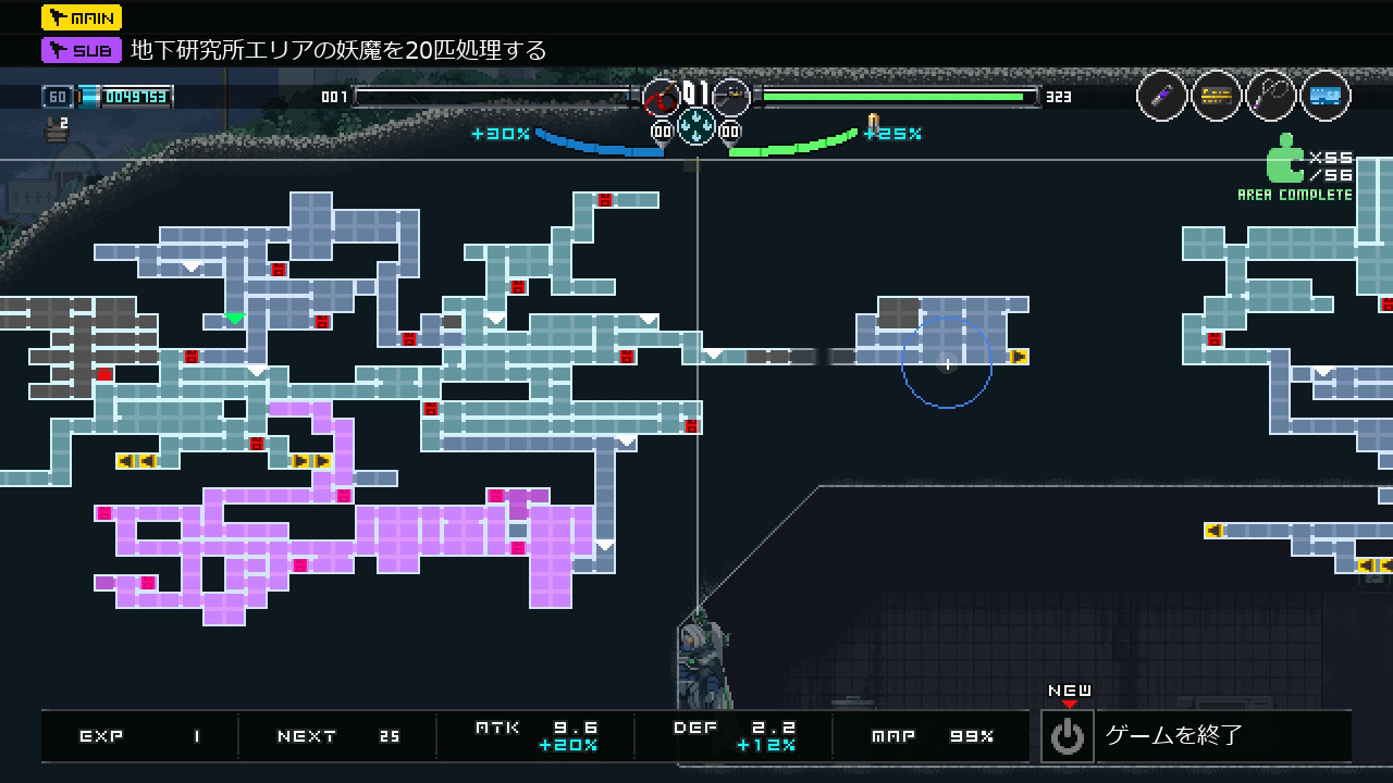- ワープ、ゲームオーバー、エリアの移動(例えば 飲み屋横丁⇒研究所 みたいな)