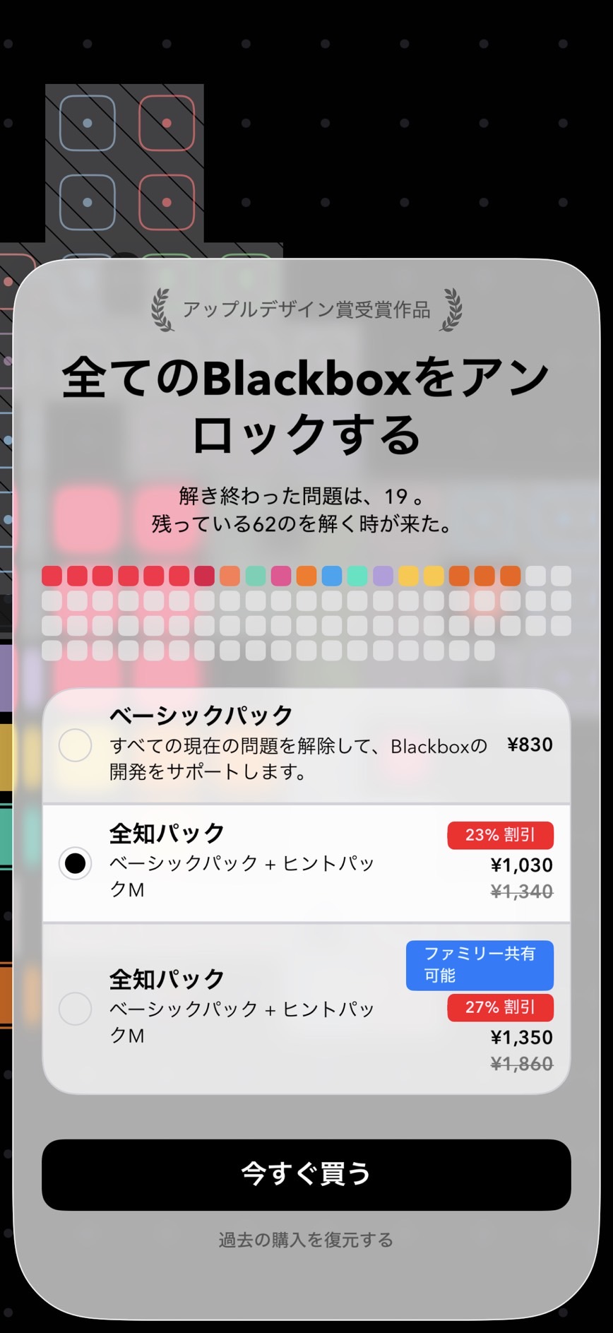 ブラックボックス【black box】 《名》 ① 内部構造が不明で謎めいている複雑な装置。 ② 「挫折」を再定義するこのパズルゲーム。