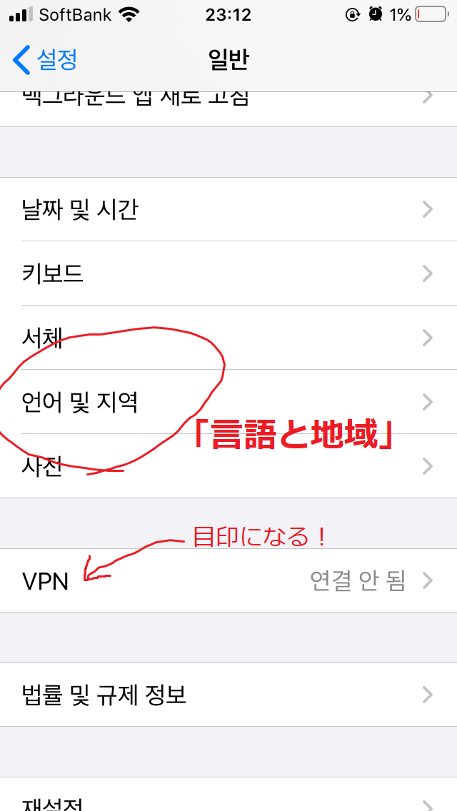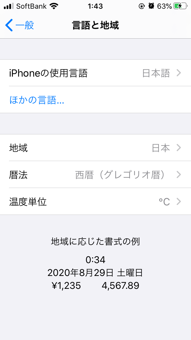 ちなみに、設定画面で言語設定の所に行く順路も同じ感じになります。異国の地で右も左も分からず迷子にならないように注意。